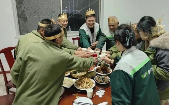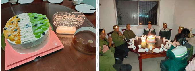 壽星們圍坐,燭光逐一亮起時(shí),有人閉目凝神,有人望向身側(cè)的同事,輕聲許下心愿。從許愿時(shí)的真誠(chéng),到吹蠟燭時(shí)的歡呼,再到飯桌上的暢聊,這場(chǎng)生日會(huì)傳遞的不僅是溫暖,更是振宇物流“以人為本”的核心價(jià)值觀。它讓員工感受到企業(yè)不只是工作的平臺(tái),更是并肩前行的“家人”,成長(zhǎng)不只是個(gè)人的奮斗,更有團(tuán)隊(duì)的托舉。